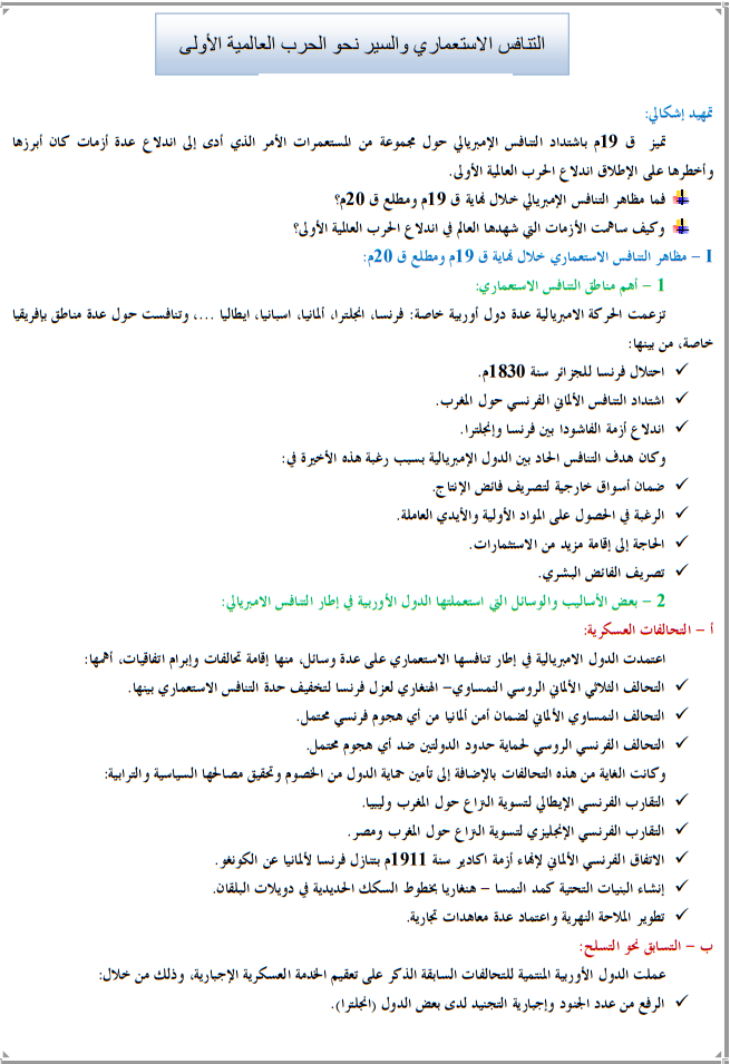 التاريخ تعديل المشاركة درس التنافس الاستعماري والسير نحو الحرب العالمية الأولى للسنة الأولى باكالوريا آداب Norman (0) درس التنافس الاستعماري والسير نحو الحرب العالمية الأولى للسنة الأولى باكالوريا آداب فيسبوك تويتر بنترست واتساب ريدايت لينكدين التاريخ أخر المواضيع من قسم : التاريخ تعليقات